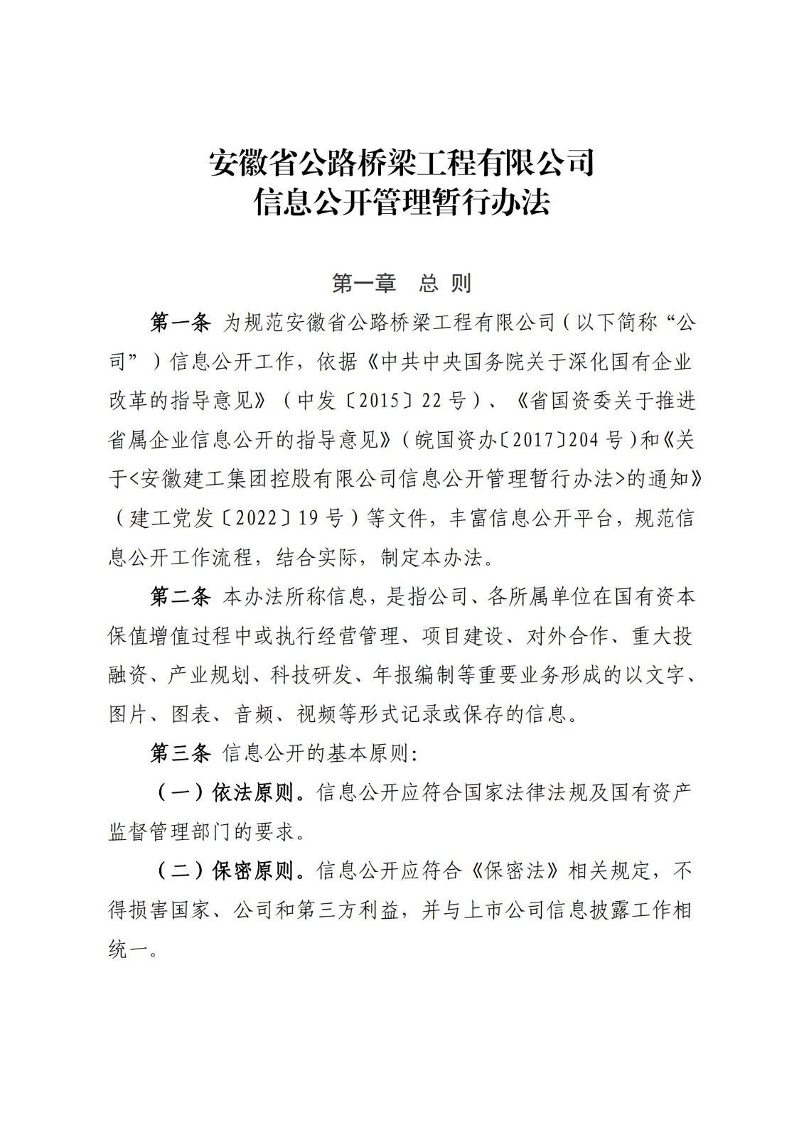 安徽建工公路橋梁建設集團有限公司信息公開暫行管理辦法