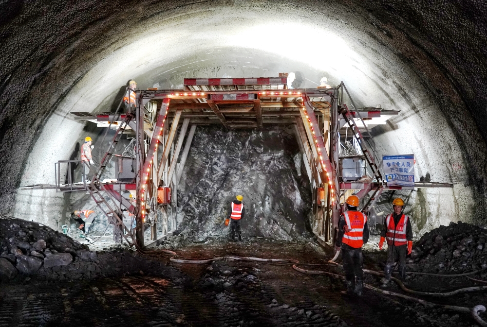 當(dāng)天清晨,薄霧如輕紗般籠罩著大地,江梓山山腰的隧道口處,已是一片熱火朝天的繁忙景象。巨大的機(jī)械臂在晨光中揮舞,在施工現(xiàn)場(chǎng)劃出一道道剛勁有力的弧線。工人們身著醒目的安全服,手持風(fēng)槍鉆,熟練而專(zhuān)注地操作著。隨著爆破孔眼逐個(gè)成孔以及炸藥裝填工作穩(wěn)步推進(jìn),爆破前的準(zhǔn)備工作逐漸進(jìn)入尾聲。