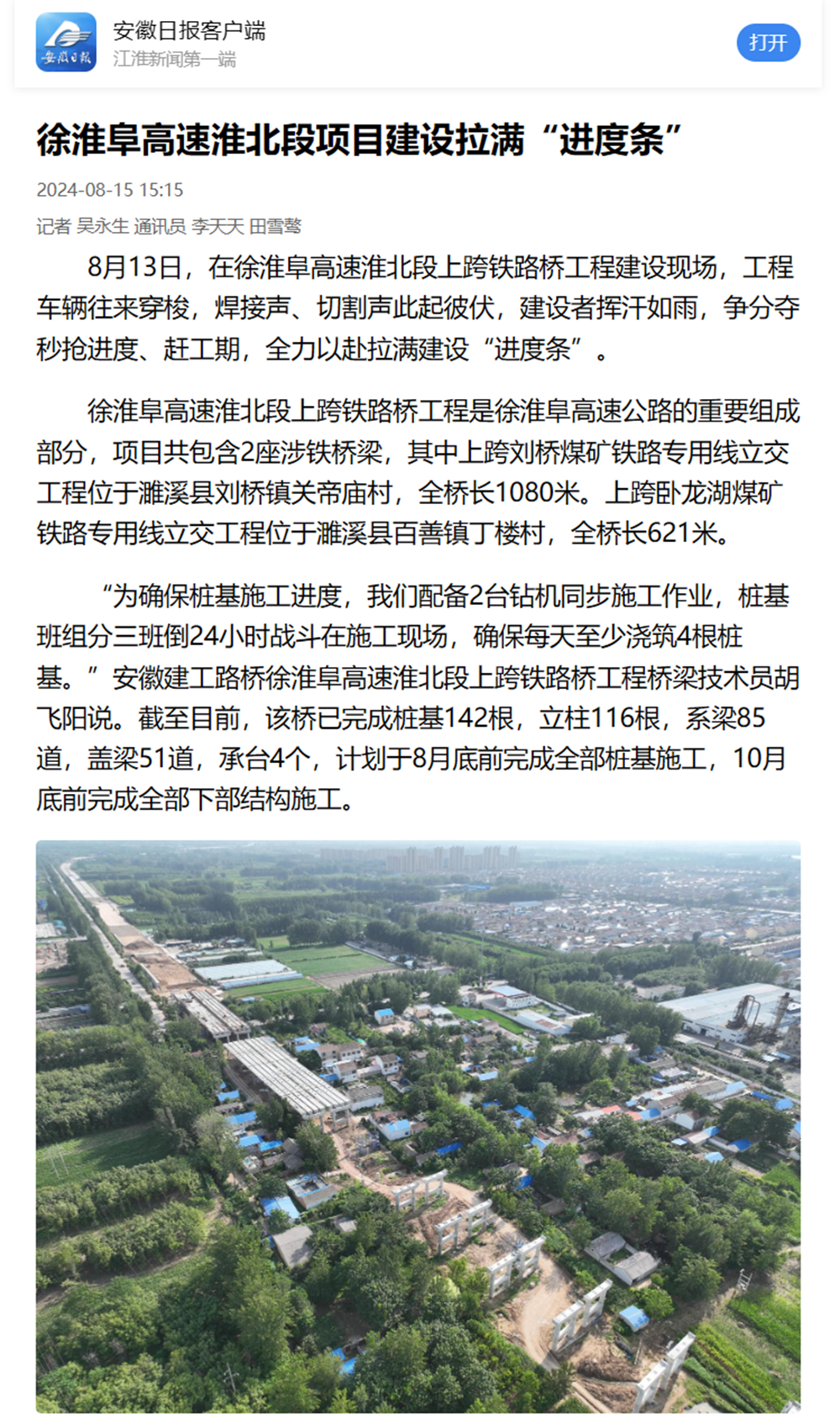 【名媒聚焦】安徽日?qǐng)?bào)客戶(hù)端聚焦徐淮阜高速淮北段上跨鐵路橋工程建設(shè)