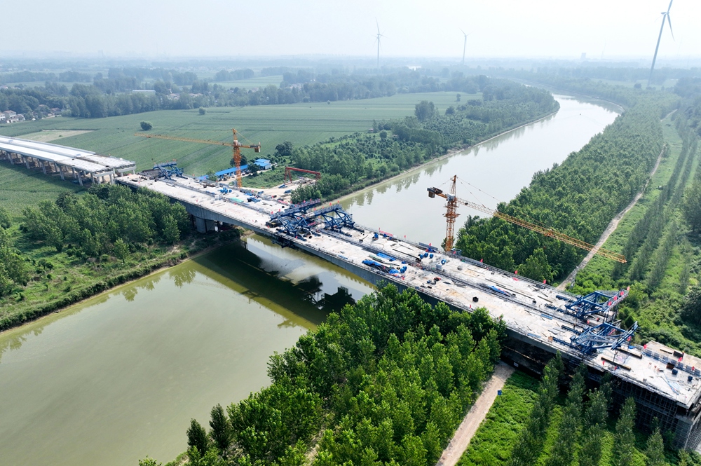 沱河特大橋是徐淮阜高速淮北段項目重點控制性工程之一,其主橋自去年11月初開始施工,于今年8月21日晚11時許實現(xiàn)右幅合龍。目前,項目施工方安徽建工路橋正全力沖刺9月底前實現(xiàn)全橋合龍的目標。