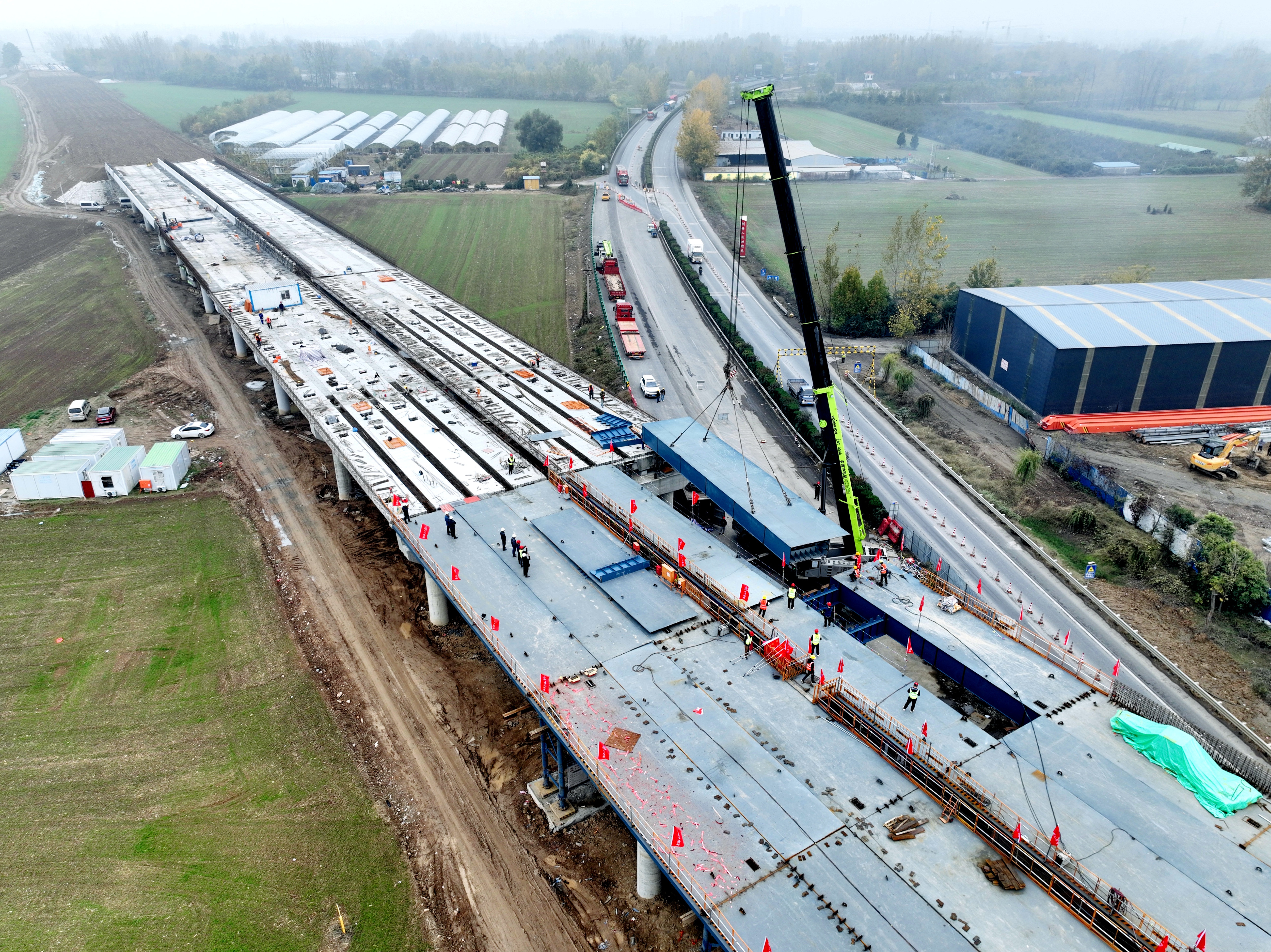 記者在現(xiàn)場(chǎng)了解到,11月以來(lái),淮北段項(xiàng)目實(shí)現(xiàn)多個(gè)重要節(jié)點(diǎn)突破,先后完成K71+462車行天橋、K46+814.5大廟溝橋、K40+647.6洪堿河大橋3座橋梁下部結(jié)構(gòu)施工,上跨臥龍湖煤礦鐵路橋、K43+681規(guī)劃G237分離立交橋、K42+794中橋三座橋梁橋面系及附屬工程施工,項(xiàng)目重點(diǎn)控制性工程K50+162.5跨S303分離立交橋鋼箱梁的全部架設(shè),目前正全力沖刺確保11月底前完成全線橋梁下部結(jié)構(gòu)施工的節(jié)點(diǎn)目標(biāo)。