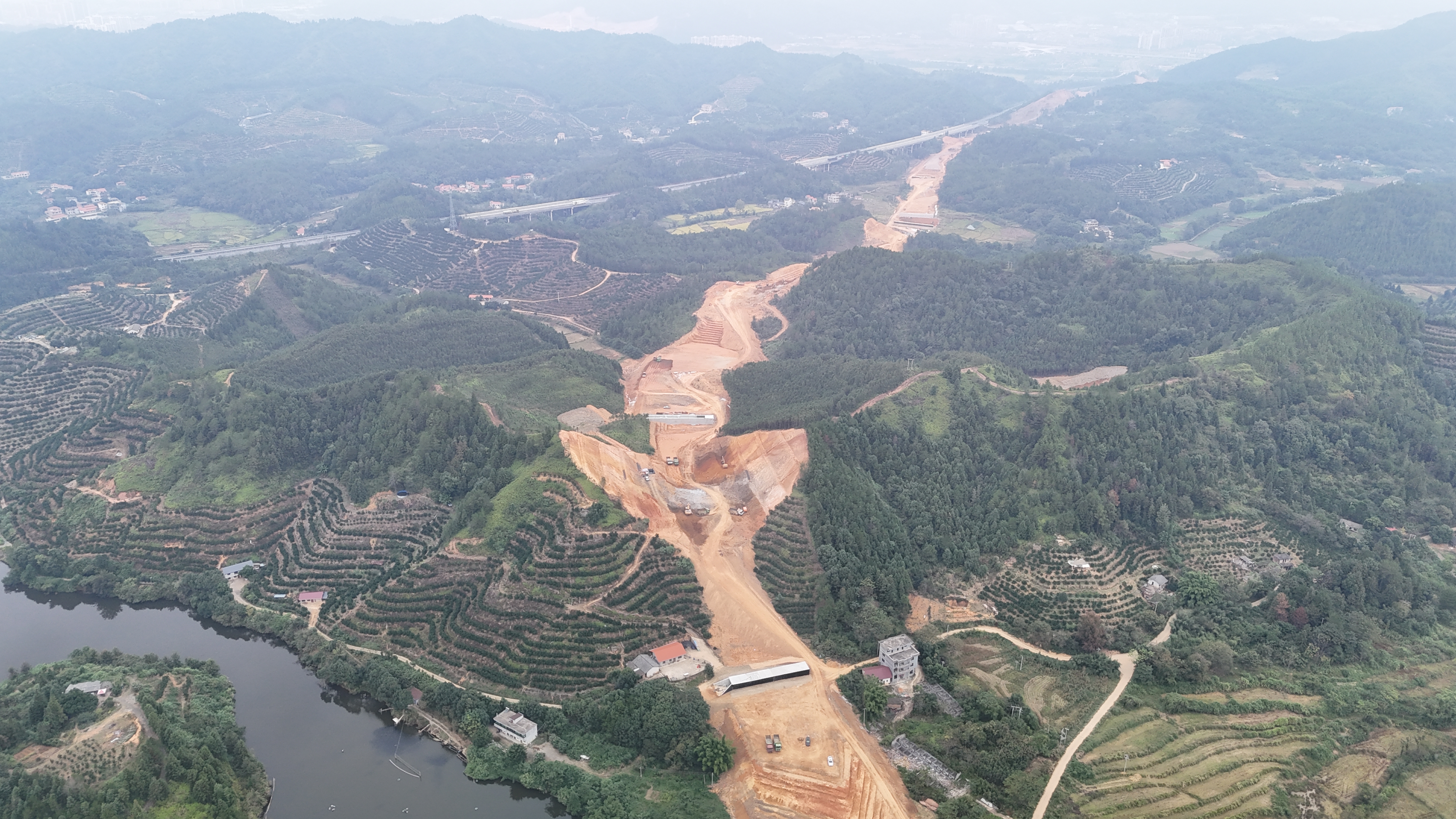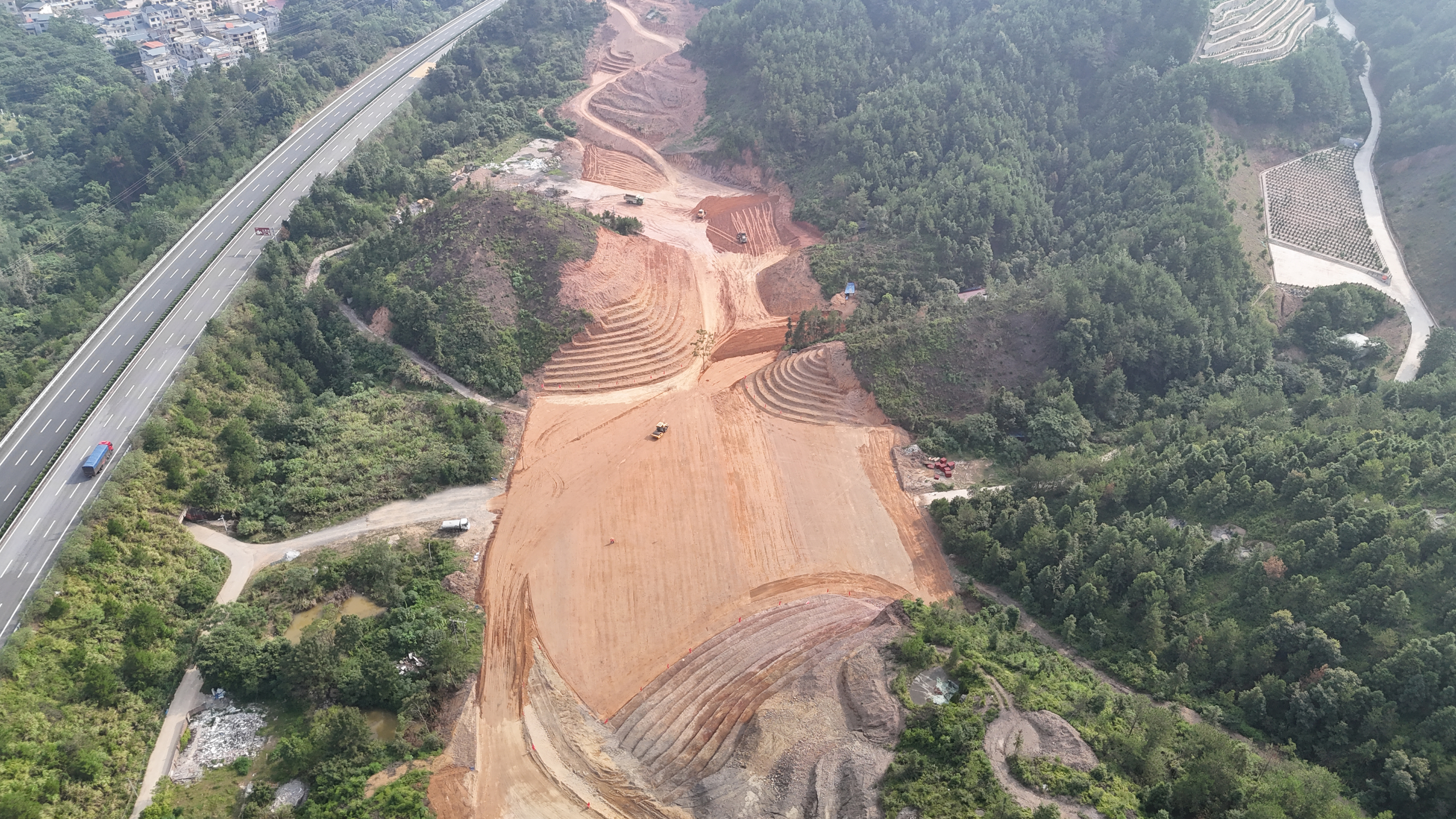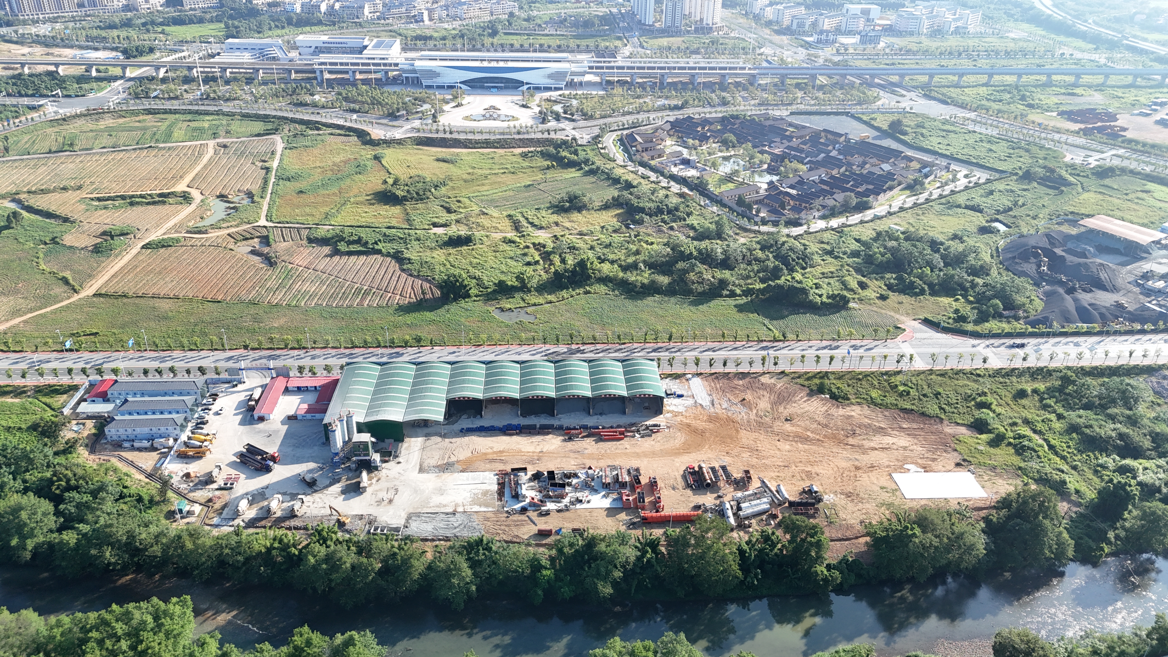 項目地處素有“圍屋之都”和“生態(tài)王國”美譽的龍南,沿線經(jīng)過多個景區(qū)、村莊和水果基地,對環(huán)境保護有著極高要求。為貫徹綠色施工理念,項目部成立了安全環(huán)保管理小組,建立健全了環(huán)保管理體系。施工現(xiàn)場配備了污水處理和揚塵控制設施,嚴格執(zhí)行土方運輸覆蓋、道路灑水降塵、噪音控制等環(huán)保措施,確保施工期間對周邊環(huán)境影響降至最低。同時,項目部注重耕地保護和廢棄物管理,通過推行廢水、廢氣、固體廢棄物的分類回收和無害化處理,減少對生態(tài)環(huán)境的破壞,力求打造生態(tài)友好型高品質(zhì)工程,實現(xiàn)工程建設與自然環(huán)境的和諧共生。