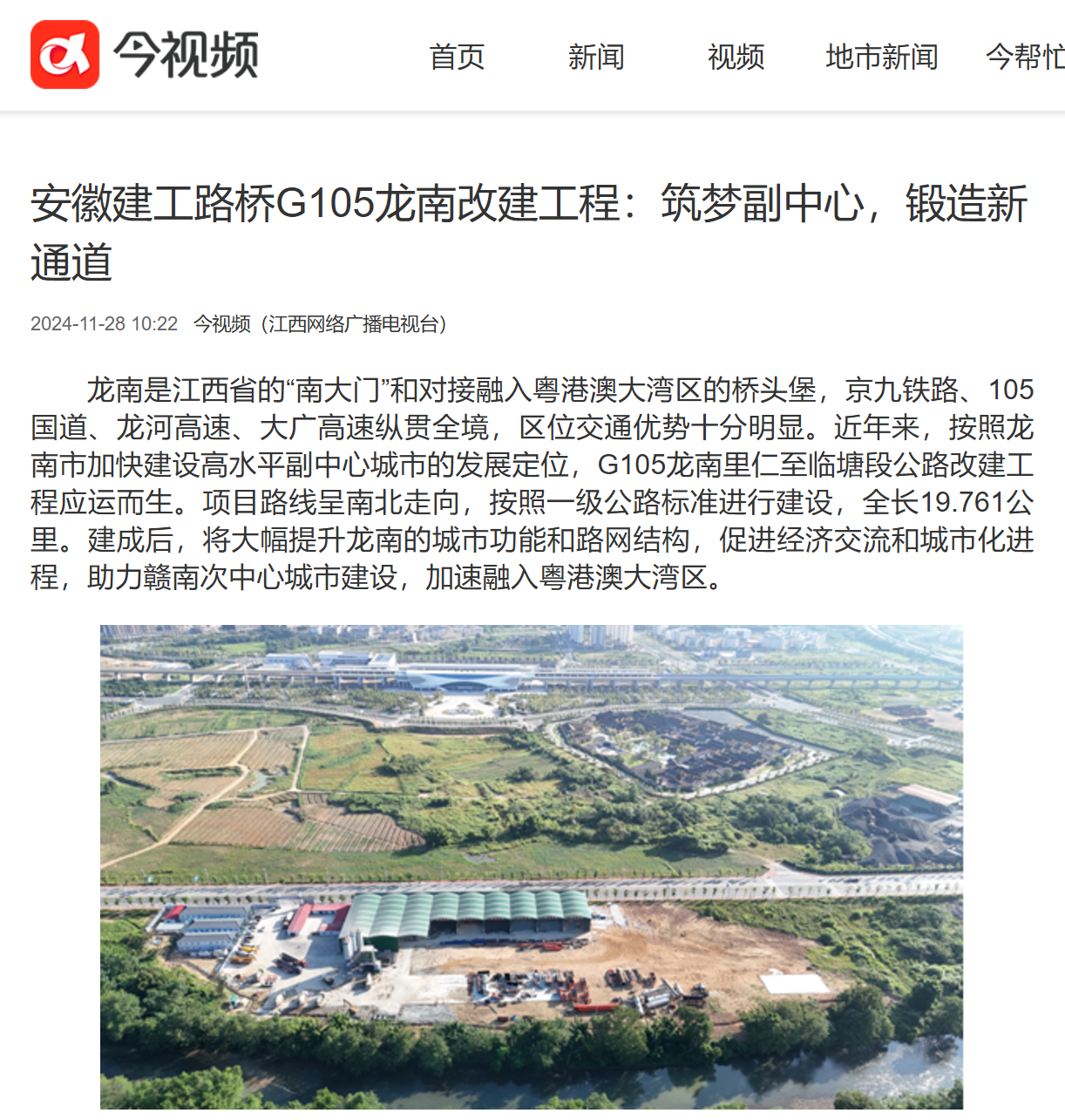 【名媒聚焦】江西網(wǎng)絡廣播電視臺:安徽建工路橋G105龍南改建工程:筑夢副中心,鍛造新通道