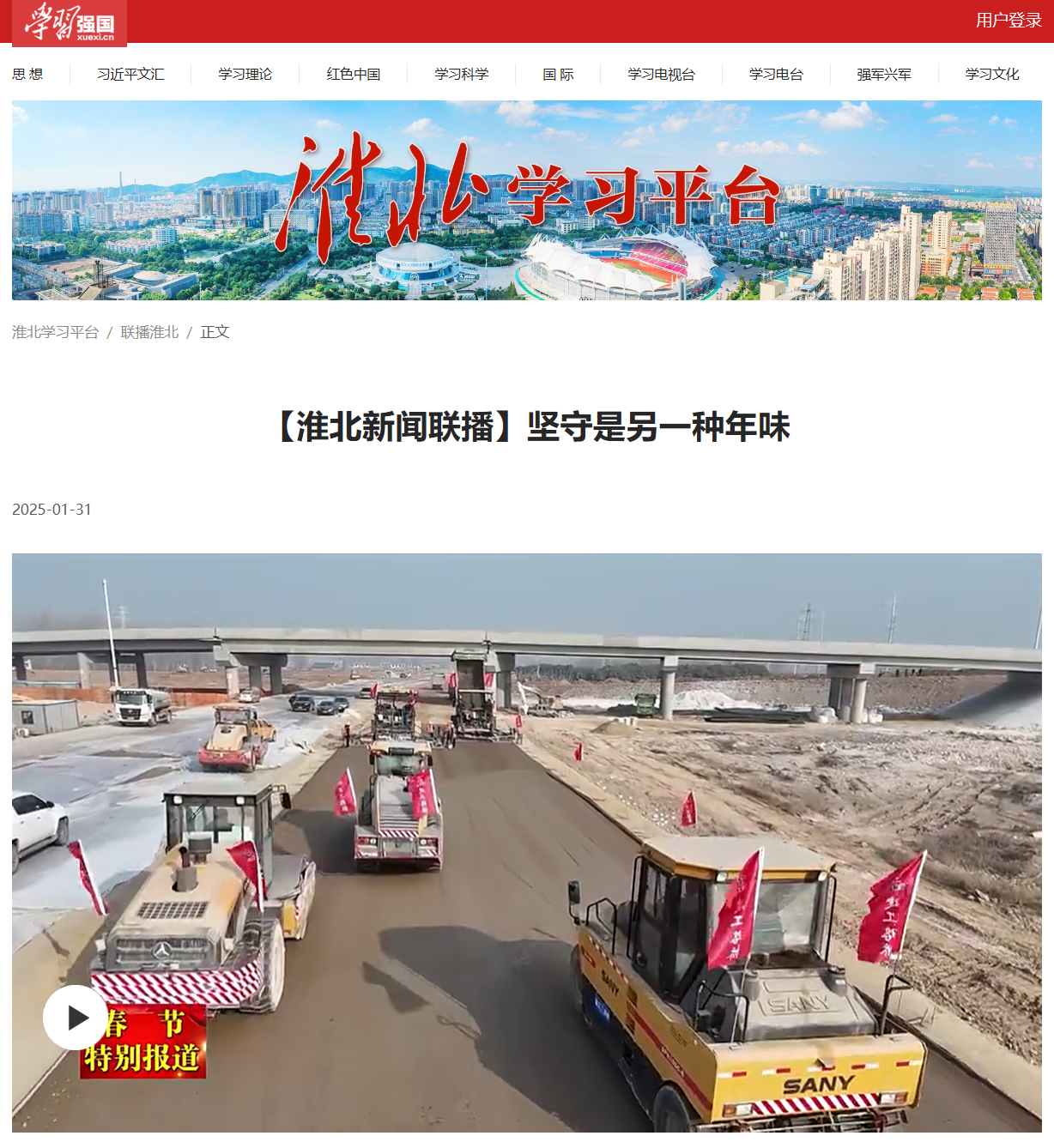 【名媒聚焦】學習強國、淮北新聞聯(lián)播關(guān)注報道徐淮阜高速淮北段項目春節(jié)期間堅守項目建設(shè)