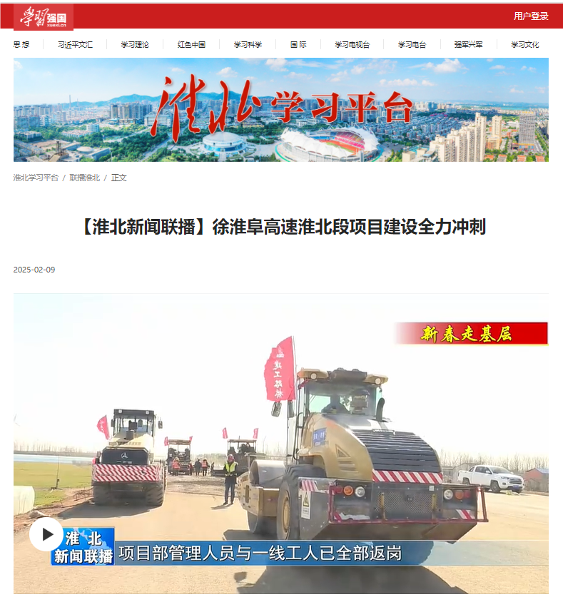 【名媒聚焦】學(xué)習(xí)強(qiáng)國、淮北新聞聯(lián)播、淮北日報(bào):徐淮阜高速淮北段項(xiàng)目全力以“復(fù)”加油干