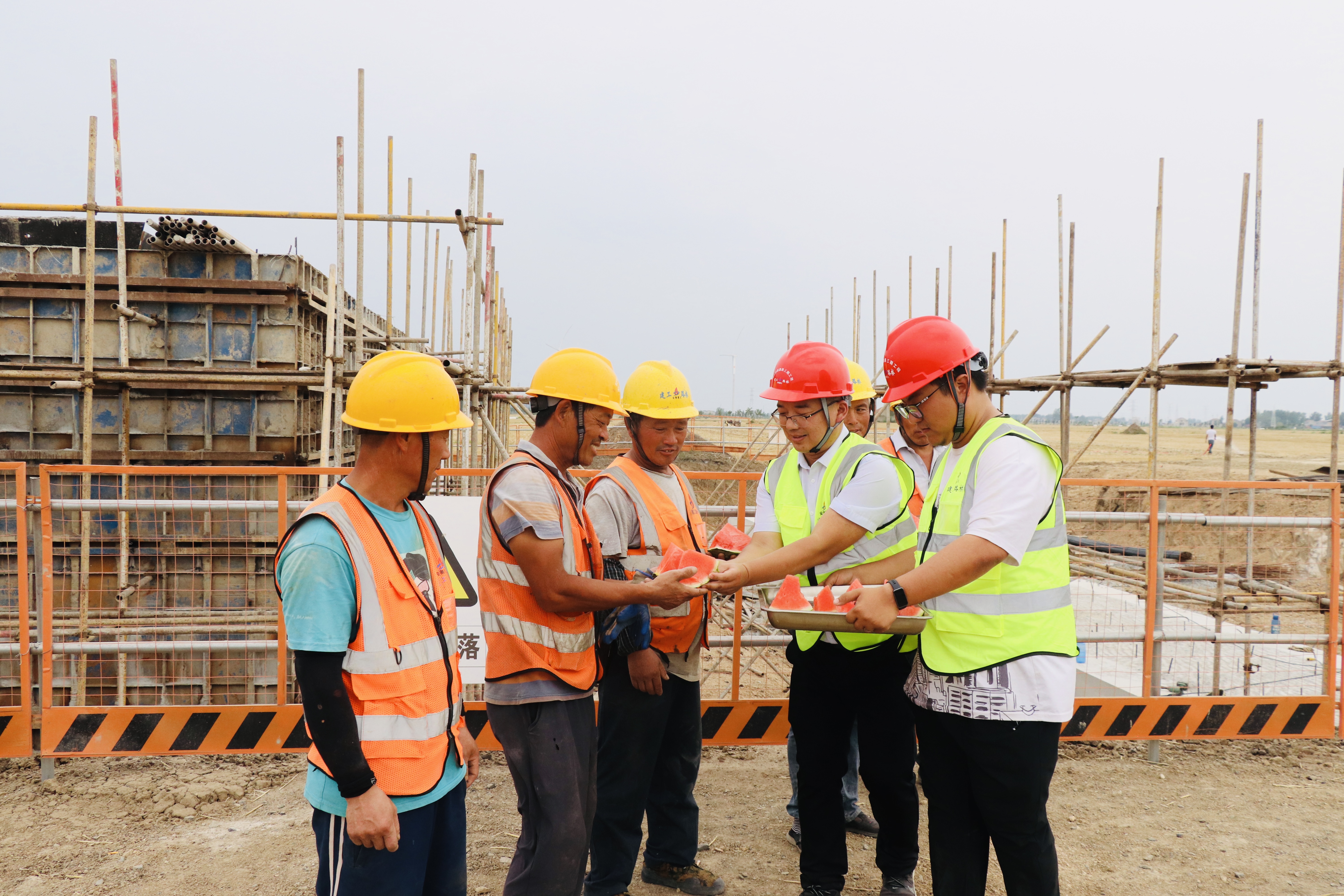 “自5月份開始,項(xiàng)目就陸續(xù)開展防暑降溫措施培訓(xùn)和中暑應(yīng)急救援演練,提前為各勞務(wù)隊(duì)伍配備充足的防暑降溫藥品,并在每日安全巡查時(shí)為一線工人發(fā)放西瓜、礦泉水、綠豆湯等一系列防暑降溫用品,時(shí)刻關(guān)注工人身體狀況,全力確保高溫下施工安全與效率?!表?xiàng)目安全環(huán)保部部長(zhǎng)方巖說(shuō)。