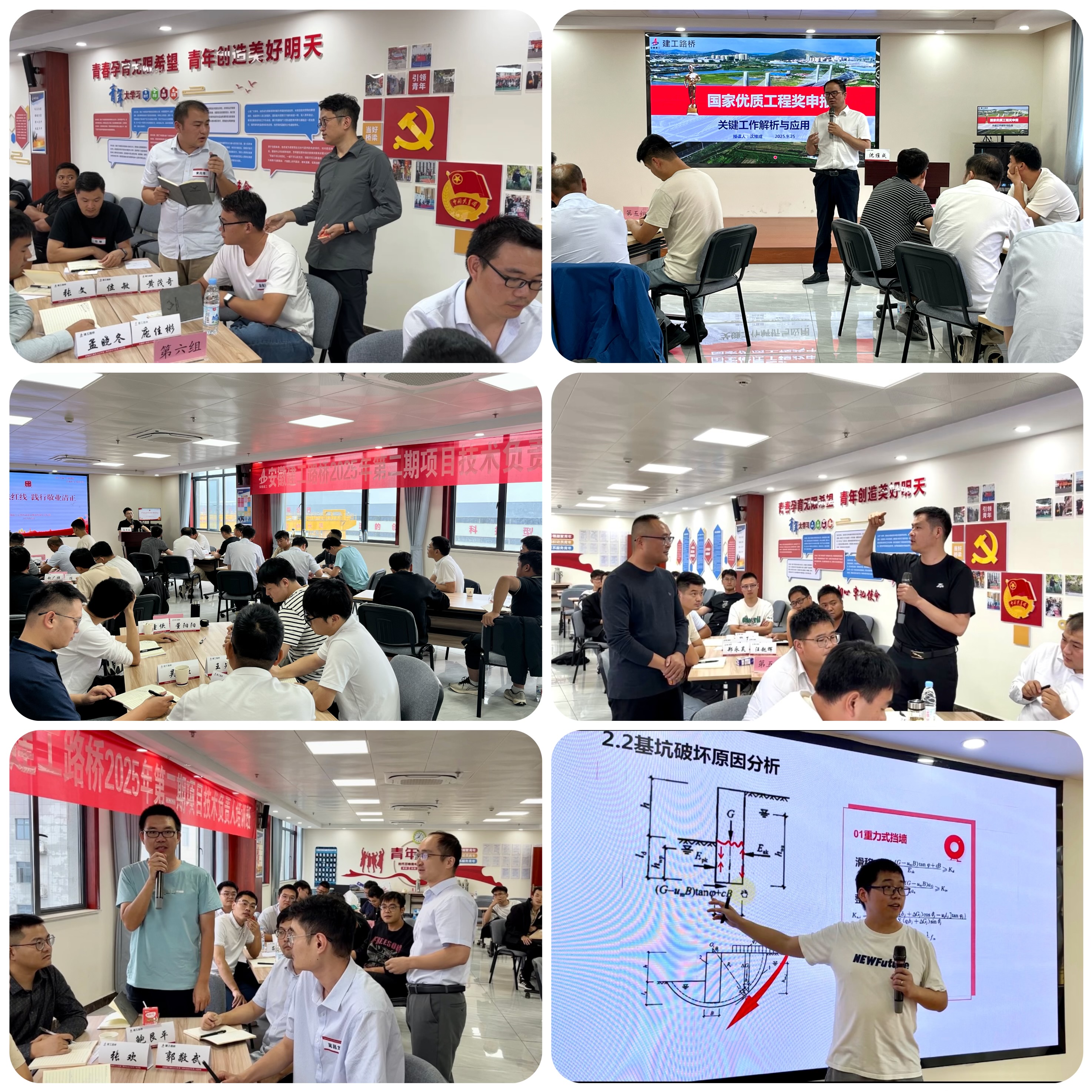 培訓班完全采用內部開發(fā)課程,包括施工工法選題與申報、國家優(yōu)質工程獎申報、基坑工程常見病害分析及支護結構設計、市政工程道路標準化施工、施工技術助產(chǎn)增效、廉潔風險防范、法律風險防范以及通用管理課程等。培訓強調一線典型實戰(zhàn)案例探討,深入剖析原因,通過場景重現(xiàn)、主題討論、分享點評等形式,促進參訓學員間互動交流與經(jīng)驗傳承,有效幫助項目技術管理人才隊伍識別技術盲點及誤區(qū)。