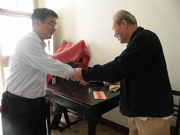 公司黨委積極開(kāi)展“我們的節(jié)日·中秋”主題活動(dòng),組織在國(guó)慶、中秋、重陽(yáng)三節(jié)前夕看望慰問(wèn)困難老職工,讓他們共享改革開(kāi)放的成果,為新中國(guó)成立60周年?duì)I造一個(gè)安定、文明、和諧的社會(huì)環(huán)境。92124日,公司總經(jīng)理、黨委副書(shū)記汪衛(wèi)東、副總經(jīng)理孫學(xué)軍等領(lǐng)導(dǎo)先后看望慰問(wèn)困難老職工代表,給他們送去了節(jié)日的祝福,并帶去慰問(wèn)金。
