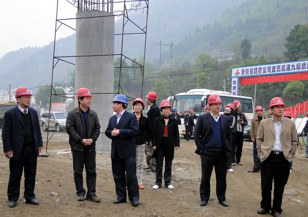 418下午,集團(tuán)公司副董事長(zhǎng)李長(zhǎng)斌、集團(tuán)公司總經(jīng)理助理、海外公司總經(jīng)理吳康、集團(tuán)公司總經(jīng)理助理、九華房地產(chǎn)公司總經(jīng)理?xiàng)畋?、安徽省建筑機(jī)械有限公司總經(jīng)理張衛(wèi)東一行蒞臨我湖北宜巴高速09標(biāo)考察指導(dǎo)工作,公司總經(jīng)理汪衛(wèi)東、黨委書(shū)記陳光磊陪同考察。