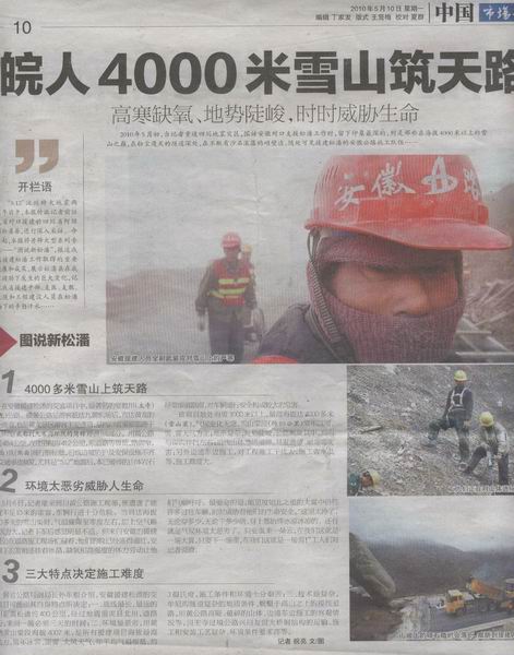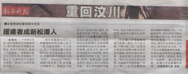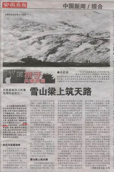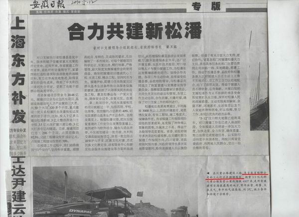 在“5.12”汶川大地震發(fā)生兩周年之際,安徽省路橋公司承建的我省對口援建四川松潘縣項目之一——漳黃公路道路改建工程02標再次引起省內(nèi)各大主流媒體的高度關(guān)注。