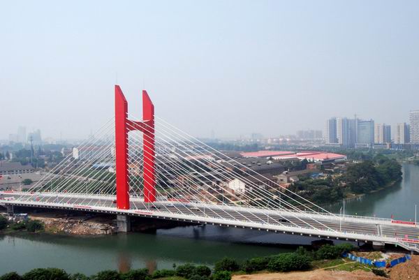 公司自承建該橋以來,攜手省交通規(guī)劃設(shè)計院、省高等級公路工程監(jiān)理公司、合肥工業(yè)大學(xué)(監(jiān)控方)傾心傾力地投入到大橋的建設(shè)中,克服結(jié)構(gòu)新穎復(fù)雜,建設(shè)時間緊,施工難度大等困難,充分運用新技術(shù)、新工藝、新材料,首次采用斜拉橋主橋塔梁同步的施工工藝,極大的縮短了施工工期;同時在施工中保質(zhì)量、搶進度、重安全,實現(xiàn)了安全生產(chǎn)零事故的目標,圓滿地完成大橋建設(shè)任務(wù)。整個建設(shè)周期16個月,比常規(guī)工期提前半年通車。