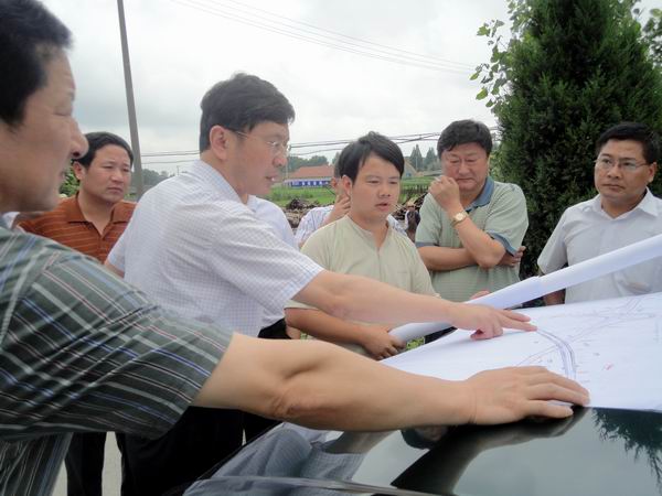 2010年7月15號(hào)上午,省交通廳副廳長羅寧、基建處長章厚忠、安徽省公路勘察設(shè)計(jì)院副院長王耀明、省高速公路控股集團(tuán)有限公司錢東升處長及副處長兼宣寧高速項(xiàng)目辦方昱主任、宣城市交通局局長牛傳勇和副局長梁世華,以及區(qū)高速公路指揮部、孫埠鎮(zhèn)相關(guān)負(fù)責(zé)人員,在我省路橋公司副總經(jīng)理盛明宏、宣寧02標(biāo)項(xiàng)目經(jīng)理張慶書的陪同下,蒞臨宣寧高速公路02標(biāo)項(xiàng)目現(xiàn)場,對K9+314支線上跨橋方案變更事宜進(jìn)行了現(xiàn)場會(huì)議討論。
