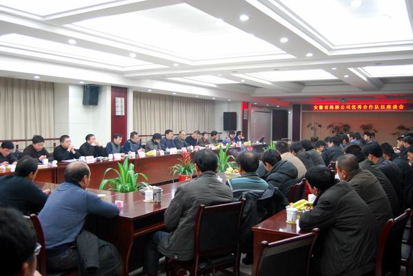 座談會開始前,會場播放了公司宣傳片,展示公司二十五年來的發(fā)展歷程。座談會由副總經(jīng)理盛明宏主持??偨?jīng)理助理傅月斌通報了公司2010年施工總體情況。公司分管領導、各部門負責人、項目經(jīng)理分別作了發(fā)言。黨委書記陳光磊指出合作共贏、共同發(fā)展是公司永久追求的目標,安徽路橋的業(yè)績也凝聚著合作隊伍的努力;合作共贏不僅是要經(jīng)濟利益,更要追求社會效益;公司各級對合作隊伍的真誠服務是職責所在,合作隊伍認真履約、堅強給力,就是對公司工作的最大支持。陳書記還表示目前項目已建立了支部、職工小家、職工書屋等,歡迎合作隊伍積極參加,享受權利。