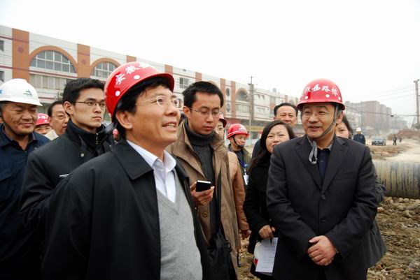 314下午,省委常委、合肥市委書記孫金龍、合肥市委常委、秘書長安列,副市長李紅一行,視察了公司承建的合作化南路高架橋1標段項目。公司總經(jīng)理汪衛(wèi)東、副總經(jīng)理孫學(xué)軍陪同視察。