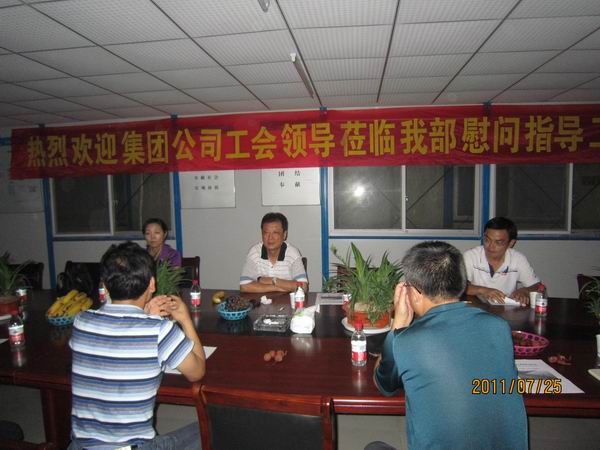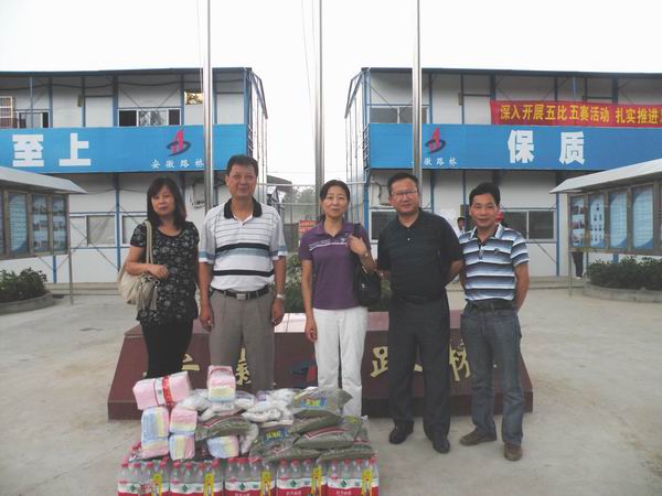 725,集團公司工會副主席李鵬飛、女工委主任胡愛紅及工會楊松一行,在公司財務總監(jiān)陸春濤、女工委主任霍雪梅等的陪同下,深入公司位于蚌埠五河縣的徐明高速11標慰問廣大一線員工,并送去白糖、綠豆、毛巾等慰問品,給一線員工帶來夏日的“清涼”。
