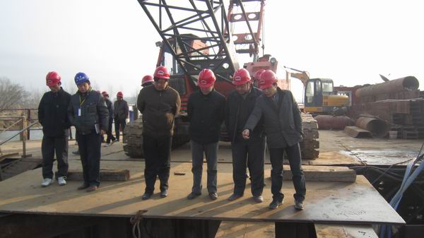 殷書記一行先后到箱梁預(yù)制場、鋼筋加工場、主墩鋼圍堰進(jìn)行了現(xiàn)場查看,并聽取了該項目負(fù)責(zé)人關(guān)于項目施工管理情況的匯報。在座談會上,殷書記對項目部前期取得的成績給予了充分肯定,也指出了存在的不足。周科長就實地查看的情況進(jìn)行了總結(jié),指出從目前檢查情況來看,路基11標(biāo)在施工質(zhì)量上是下了功夫的,并鼓勵大家再接再厲,安全、優(yōu)質(zhì)、高效地完成這座特大橋的建設(shè)。