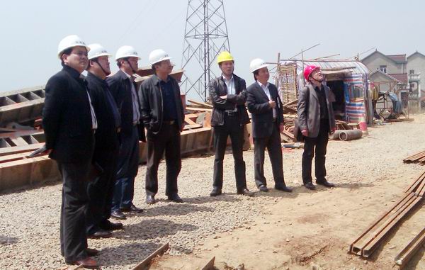戴總一行首先來到宣貍改建L4標北山河大橋施工現(xiàn)場,對北山河橋掛籃及主橋施工進行了細致的了解,并聽取了L4標項目經(jīng)理江仲明關(guān)于工程質(zhì)量與進度、安全文明施工方面的匯報。隨后,在L5標項目經(jīng)理劉冬的陪同下,戴總一行察看了L5標全線的生產(chǎn)和進度情況,對工程目前階段的重點和難點給予了建設性指導意見。