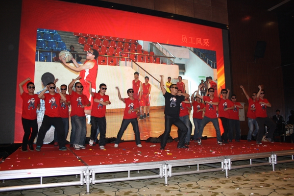 音域?qū)拸V,音色純正的男生獨唱《一生中最愛》,感情豐沛,對公司特有的情懷溢于言表;來自江西撫吉高速項目的歌曲串燒極具舞臺表現(xiàn)力,唱出了對公司的每位兄弟姐妹的美好祝愿;十年風(fēng)雨共濟,十年不離不棄,宣寧項目自編自演的光影節(jié)目《十年》,黑白的影像,鏗鏘的獨白,展現(xiàn)了公司十年光輝歷程及對未來美好前景的祝愿,展現(xiàn)了鑄就恢弘藍圖的飽滿信心,引起了現(xiàn)場全體觀眾的內(nèi)心共鳴;后勤隊合唱《眾人劃槳劃大船》,讓我們感覺到了團結(jié)就是力量,離夢想的步伐將會越來越近;宣貍五標(biāo)青年團隊引領(lǐng)潮流,團隊風(fēng)采展示融合時下流行的《江南style》舞蹈,引爆全場,將聯(lián)誼會氣氛推向高潮;一首《牽手》,真情流露,溫柔而富有感性;租賃公司情景劇《瘋狂走四方》更是搞笑吐糟,引起陣陣掌聲,再一次讓現(xiàn)場氣氛推向高潮。