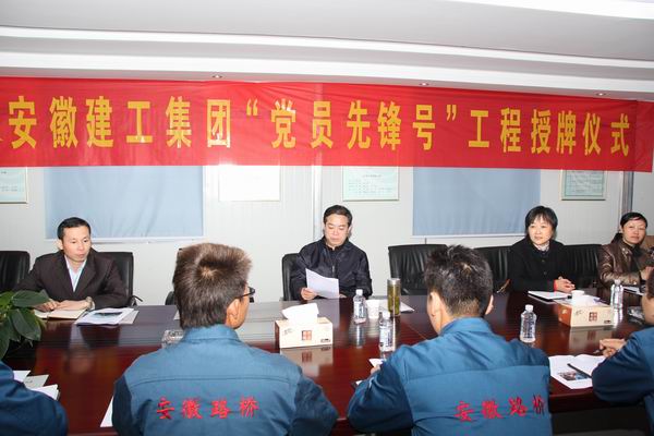 1189日、1113,安徽建工集團(tuán)副董事長、黨委副書記李長斌在集團(tuán)黨委工作部副主任邢應(yīng)梅的陪同下,先后深入公司徐明11標(biāo)、徐明路面03標(biāo)、阜陽市政1標(biāo)、汪港A1標(biāo)和G205改建路面等5個爭創(chuàng)“黨員先鋒號”項(xiàng)目,檢查指導(dǎo)工作,并授牌。
