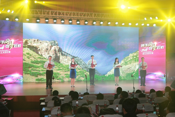 匯演結(jié)束后,集團(tuán)和公司領(lǐng)導(dǎo)為獲獎(jiǎng)節(jié)目頒獎(jiǎng),并和全體演員合影留念。
