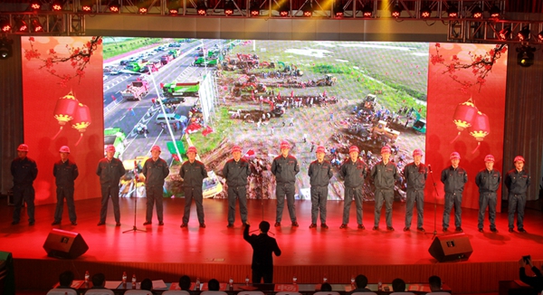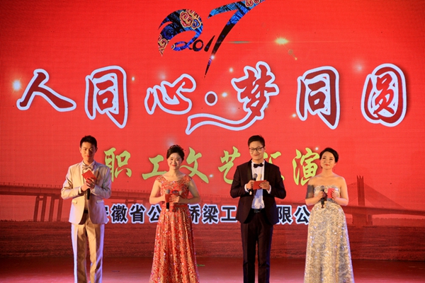 演出現(xiàn)場(chǎng)二樓眺臺(tái)正上方懸掛著醒目的橫幅:“堅(jiān)持創(chuàng)新引領(lǐng) 搶抓發(fā)展機(jī)遇 為早日實(shí)現(xiàn)‘兩個(gè)超百億’目標(biāo)而努力奮斗”,舞臺(tái)正中,“人同心 夢(mèng)同圓”的晚會(huì)主題熠熠生輝。公司黨委書(shū)記、董事長(zhǎng)、總經(jīng)理孫學(xué)軍在致辭中指出,2016年,在建工集團(tuán)黨委的正確領(lǐng)導(dǎo)下,公司迎來(lái)了發(fā)展史上具有里程碑意義的一年,公路工程施工總承包特級(jí)資質(zhì)和行業(yè)工程設(shè)計(jì)甲級(jí)資質(zhì)順利獲批,發(fā)展質(zhì)量大幅提升,競(jìng)爭(zhēng)力、影響力不斷增強(qiáng),職工文化生活豐富多彩,企業(yè)活力、凝聚力進(jìn)一步增強(qiáng),這是廣大職工共同奮斗的結(jié)果,他代表公司黨委和領(lǐng)導(dǎo)班子向全體職工及家屬表示衷心的感謝和崇高的敬意。對(duì)下一步工作,孫學(xué)軍強(qiáng)調(diào),2017年,要充分發(fā)揮特級(jí)資質(zhì)優(yōu)勢(shì),總結(jié)提升信息化建設(shè),繼續(xù)完善各項(xiàng)基礎(chǔ)管理,進(jìn)一步加強(qiáng)企業(yè)凝聚力,繼續(xù)推進(jìn)公司改革發(fā)展事業(yè)向前發(fā)展。