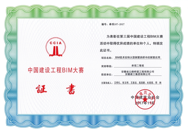 近日,在廈門召開的中國建設工程BIM技術成果經驗交流會暨第三屆全國建設工程BIM大賽成果展示會上,由公司選送的《BIM技術在特大型鋼管拱橋中的探索應用》成果,在全國794項BIM參賽成果中脫穎而出,以優(yōu)異的成績榮獲“第三屆中國建設工程BIM大賽”單項二等獎。