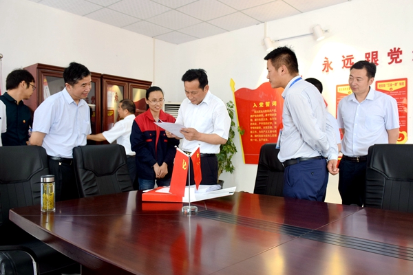 牛書記一行查閱黨建相關(guān)資料