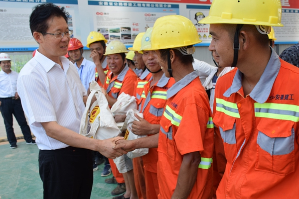 8月3日,淮北市委常委、紀委書記宰學(xué)明在市紀委監(jiān)察委和市總工會相關(guān)負責人的陪同下,深入淮北市S101及S254改建工程PPP項目施工現(xiàn)場,看望慰問公司一線參建人員。