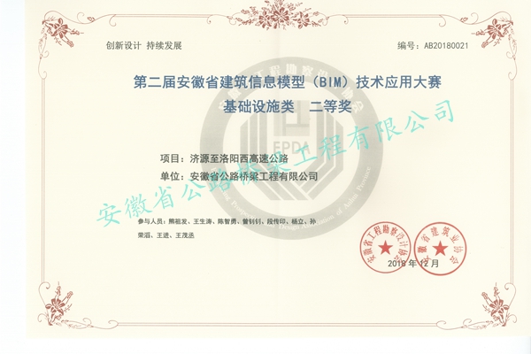 公司榮獲第二屆安徽省BIM技術(shù)應(yīng)用大賽二等獎