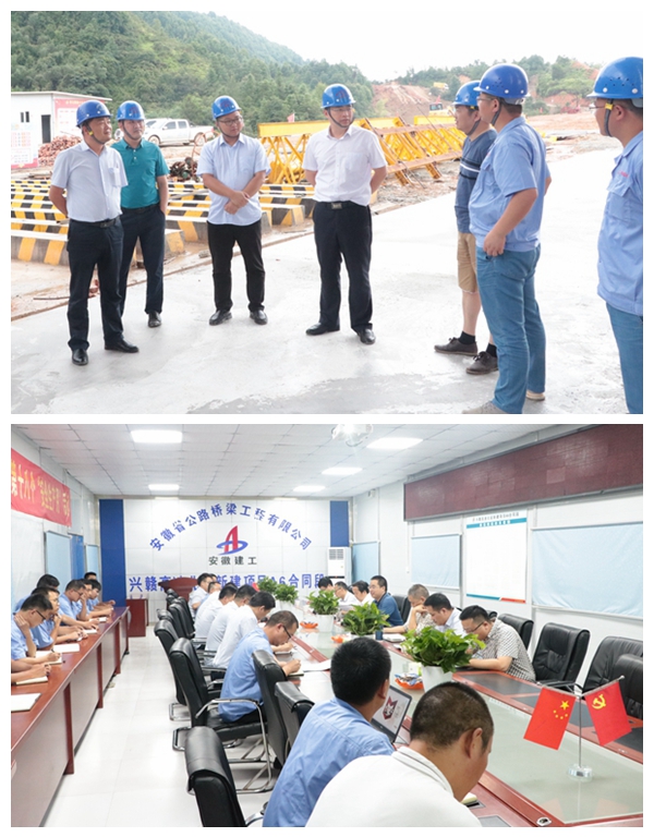 7月10日上午,公司總經(jīng)理錢(qián)申春一行到興贛北延A6標(biāo)慰問(wèn)一線職工并調(diào)研指導(dǎo)工作,道路分公司總經(jīng)理張慶書(shū)等隨同調(diào)研。