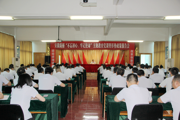 為進(jìn)一步推深做實(shí)“不忘初心、牢記使命”主題教育,按照公司主題教育方案部署,8月2日下午,股份公司副總經(jīng)理、公司黨委書記、董事長(zhǎng)孫學(xué)軍以“守初心 擔(dān)使命 找差距 抓落實(shí)——用習(xí)近平新時(shí)代中國(guó)特色社會(huì)主義思想指導(dǎo)打造品質(zhì)路橋卓越路橋”為主題,作了一場(chǎng)主題教育黨課暨形勢(shì)政策報(bào)告會(huì)。集團(tuán)主題教育第四指導(dǎo)組副組長(zhǎng)王永來(lái)到會(huì)指導(dǎo)。公司領(lǐng)導(dǎo),中層干部,在肥項(xiàng)目經(jīng)理、黨支部負(fù)責(zé)人,機(jī)關(guān)全體黨員100余人參加了報(bào)告會(huì)。