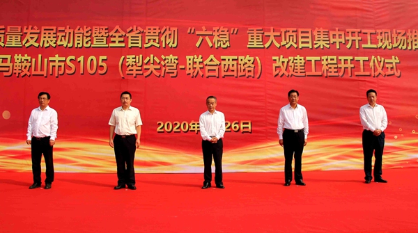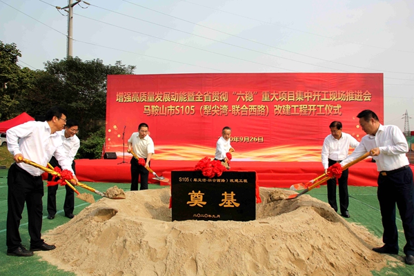 9月26日上午,增強(qiáng)高質(zhì)量發(fā)展動能暨全省貫徹“六穩(wěn)”重大項(xiàng)目集中開工現(xiàn)場推進(jìn)會(馬鞍山市分會場)在公司承建的S105(犁尖灣-聯(lián)合西路)改建工程現(xiàn)場舉行,該項(xiàng)目開工儀式同期舉辦。馬鞍山市委書記張?jiān)婪宄鱿瘍x式并宣布工程開工,市委副書記、市長袁方,公司黨委副書記、總經(jīng)理錢申春分別致辭。