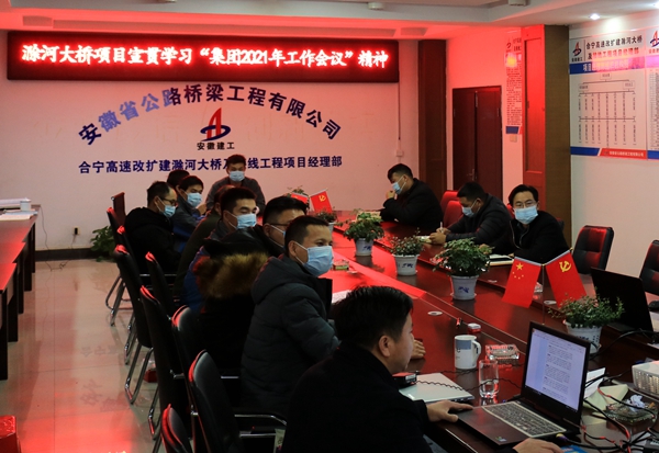 2月3日上午,集團(tuán)2021年工作會議在合肥勝利召開。會議結(jié)束后,安徽路橋公司所屬各級黨組織積極行動,把學(xué)習(xí)傳達(dá)集團(tuán)2021年工作會議精神作為當(dāng)前重要工作抓緊抓實(shí)。