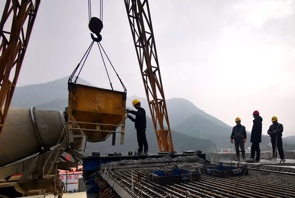 在全長8.18公里的施工線上,荊竹坑大橋、2#拌和站、2#預(yù)制梁場及鋼筋加工場等多個施工點同時多點作業(yè),多個工序同時推進。其中,荊竹坑大橋左線2#橋橋臺施工不間斷;2#拌和站春節(jié)期間共完成砼量320方;2#預(yù)制梁場施工人員全部就地過年,加班加點作業(yè),保證每日澆筑3-4片預(yù)制橋梁板,春節(jié)期間完成近30片梁板,為全線橋梁梁板架設(shè)奠定有力基礎(chǔ)。