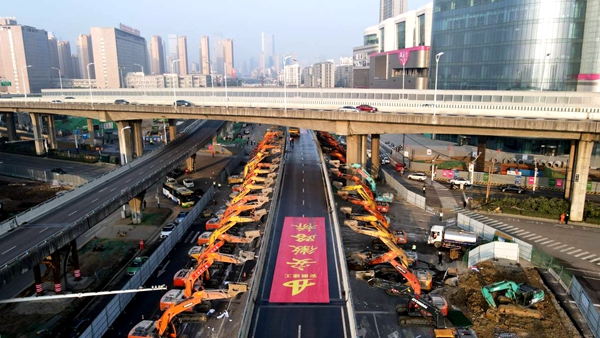 2月13日,農(nóng)歷大年初二,由安徽路橋承建的合肥市南二環(huán)由東至南上金寨路高架匝道,40臺大型破碎機同時進行破碎作業(yè),引來不少媒體和市民的線上圍觀?!绊椖坎砍薪拥墓こ讨饕w2.84公里地面道路、1.5公里主線高架、4條改建匝道和2條新建匝道。這個春節(jié),項目部不打烊,一方面是響應(yīng)政府號召,另一方面是加緊工期,早日讓城市道路更加暢通起來。”暢通二環(huán)項目負責(zé)人介紹道。