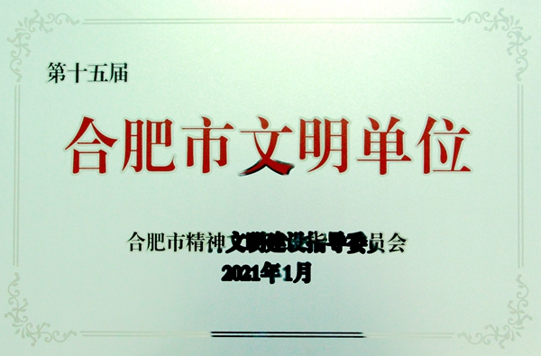 公司榮獲合肥市第十五屆文明單位榮譽稱號