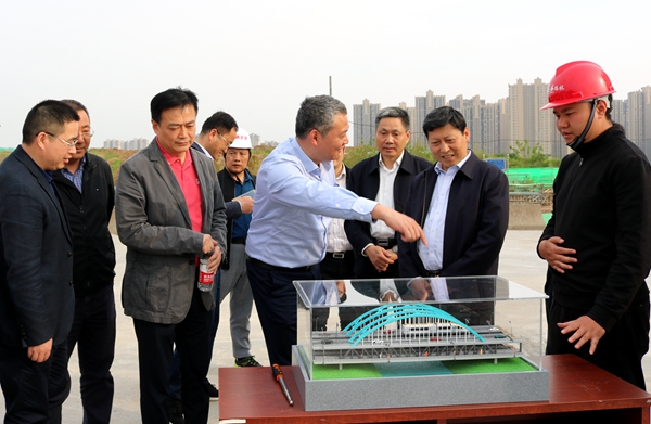 4月23日,安徽省發(fā)改委黨組成員、副主任胡再生到公司承建的引江濟淮繁華大道橋項目調研指導工作。