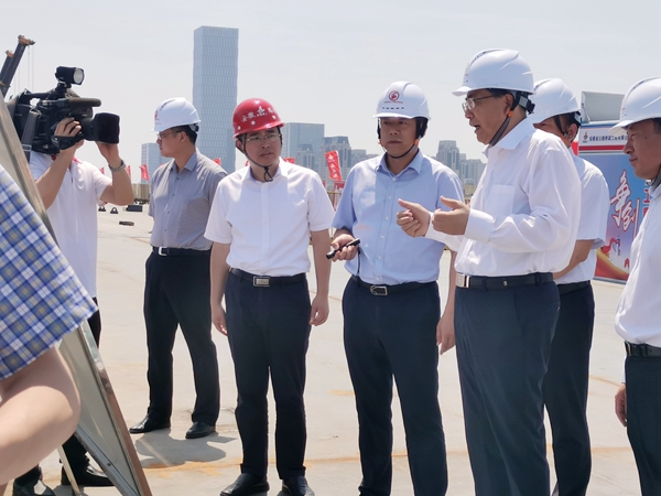 在項(xiàng)目主線橋鋼箱梁施工現(xiàn)場(chǎng),李錦斌聽(tīng)取了公司黨委書(shū)記、董事長(zhǎng)錢(qián)申春關(guān)于項(xiàng)目概況、施工工藝和施工進(jìn)度的匯報(bào),仔細(xì)詢問(wèn)了項(xiàng)目風(fēng)險(xiǎn)隱患識(shí)別、風(fēng)險(xiǎn)防范舉措、如何保障安全施工等工作開(kāi)展情況,對(duì)項(xiàng)目的安全生產(chǎn)工作表示肯定。李錦斌再三叮囑,要堅(jiān)持綜合管控、分類治理、壓實(shí)責(zé)任、全面覆蓋,做到排查精準(zhǔn)、管理精細(xì)、措施精當(dāng),有效化解各類安全生產(chǎn)風(fēng)險(xiǎn),真正實(shí)現(xiàn)技術(shù)過(guò)關(guān)、施工過(guò)關(guān)、質(zhì)量過(guò)關(guān)、安全過(guò)關(guān)。