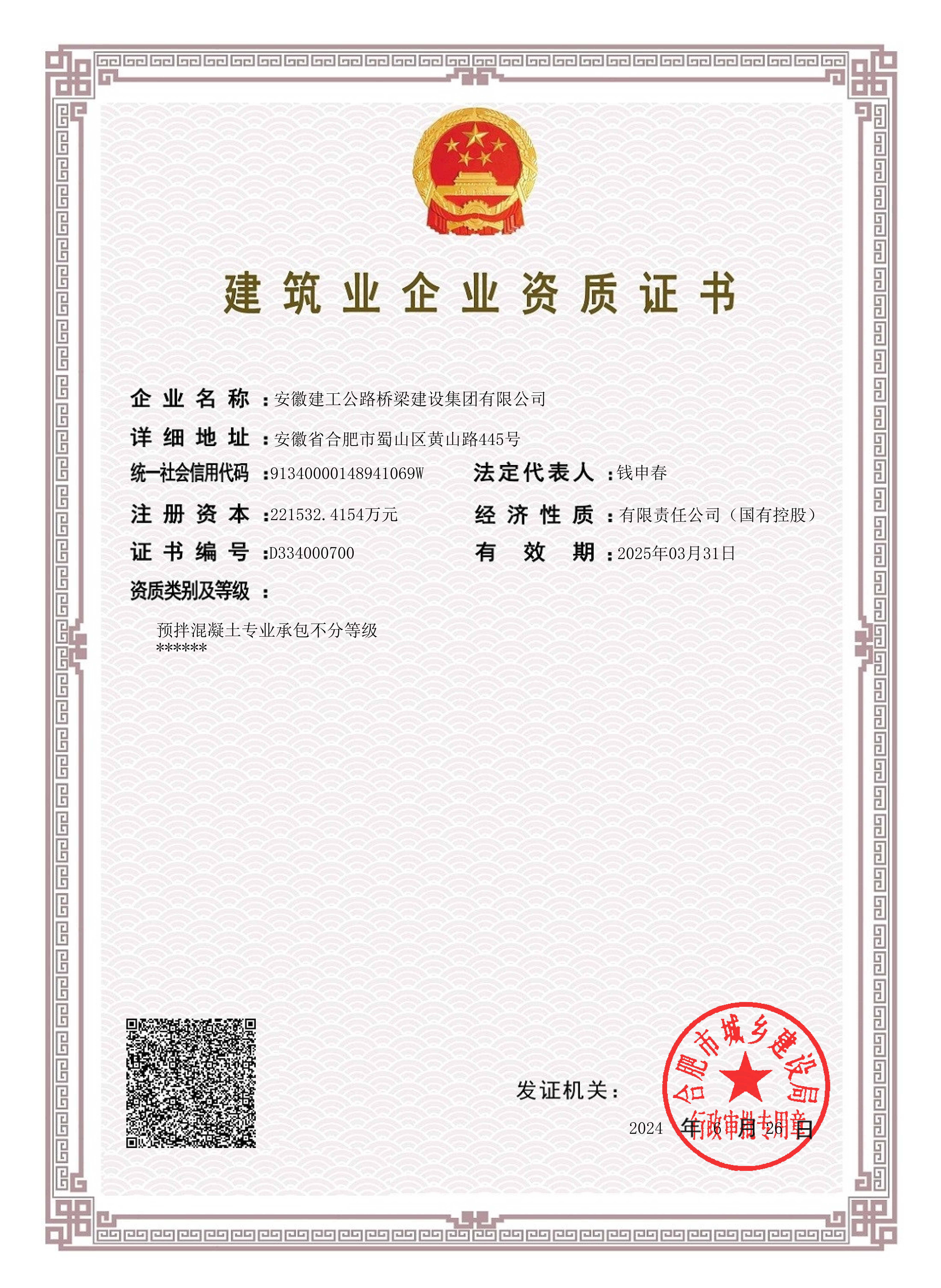 隧道工程專業(yè)承包壹級(jí)、城市及道路照明工程專業(yè)承包壹級(jí)、地基基礎(chǔ)工程專業(yè)承包壹級(jí)、環(huán)保工程專業(yè)承包壹級(jí)、橋梁工程專業(yè)承包壹級(jí)、市政公用工程施工總承包壹級(jí)、建筑工程施工總承包壹級(jí)、鋼結(jié)構(gòu)工程專業(yè)承包壹級(jí)、建筑裝修裝飾工程專業(yè)承包壹級(jí)